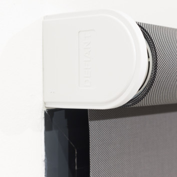 The YewdaleDefiant® R55 electric roller blind is supplied with a Yewdale motor as standard. It comes with white plastic-covered, metal brackets for face or top fixing, with 53mm or 70mm grooved aluminium barrel. The barrel size is dependent on the blind size and fabric weight. Within the barrel, there is a powerful 240v AC Yewdale motor. The motor is controlled by a switch/transformer which may be surface or flush mounted. The fabric is locked into a groove in the barrel, and features a white Tear Drop aluminium bottom bar as standard.